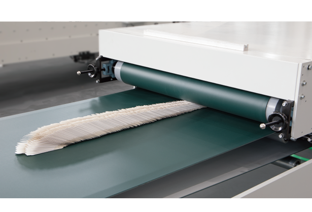 - 压花动力辊引导皮带送纸,保证输送纸张平稳高速