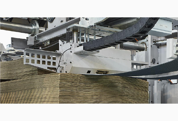 纸张分批输送入拍纸位置,有效地对各种不同规格的纸板进行校正